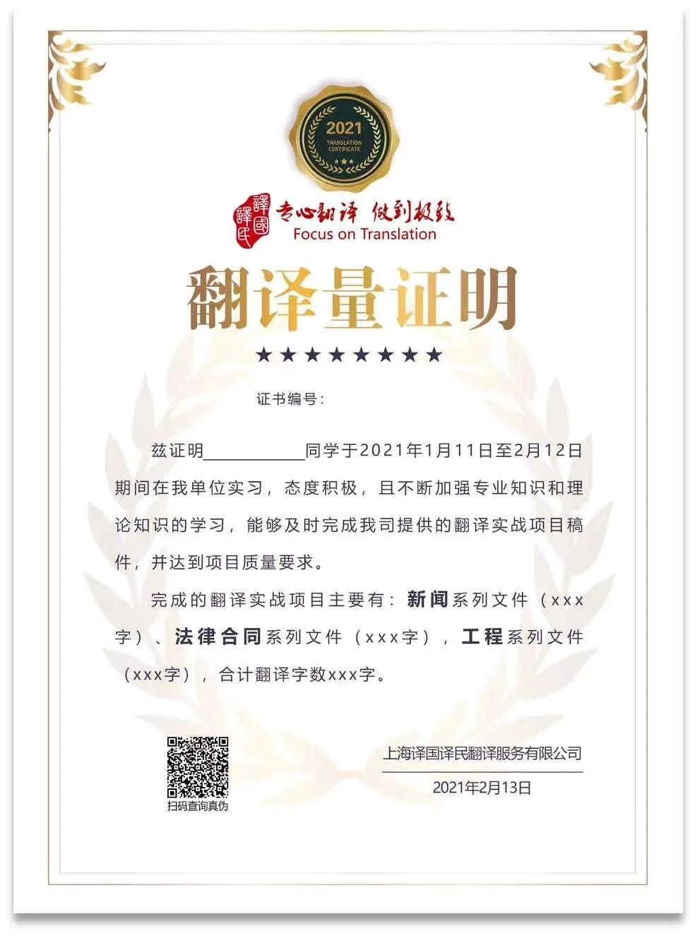 本次实习我们给大家提供了多样化的选择,单双语实习证明、实习鉴定表、翻译量证明等,各个证书的获取方式大家可以查看实习群的相关文件。