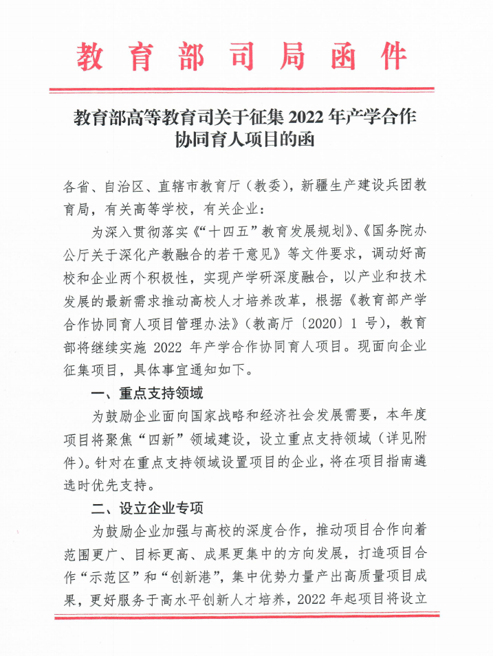 译国译民为积极响应教育部号召,落实《“十四五”教育发展规划》、《国务院办公厅关于深化产教融合的若干意见》等精神与要求,深化产教融合工作,在《教育部产学合作协同育人项目管理办法》(教高厅〔2020〕1号)的规定下,开展产学合作协同育人项目。经产学合作协同育人项目专家组审核,译国译民2022年4月批次48个项目(注:当前已预定28个,剩20个项目可申请。)全部成功批准通过。