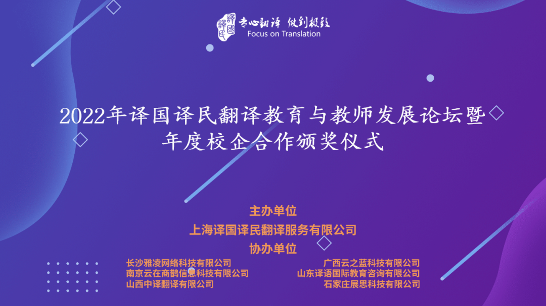 最后,衷心感谢各位专家学者以及主持嘉宾为此次研讨会所做的精心准备及鼎力支持,为参会者带来一场云上的学术盛宴。译国译民深切关注翻译教育的发展,衷心希望通过本次线上研讨会,给各位领导与老师提供一个交流的平台,更期待能通过我们的努力和用心,与越来越多的高校建立起实质性的校企合作关系,从翻译教育、人才培养、师资团队建设、学科建设以及学生升学与就业等多方面发力,为推进翻译学科发展和外语教师发展贡献绵薄之力,期待下一届研讨会的举行!