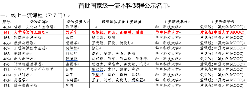 其中,我院刘泽华教授团队讲授的《大学英语词汇解析》入选线上一流课程。